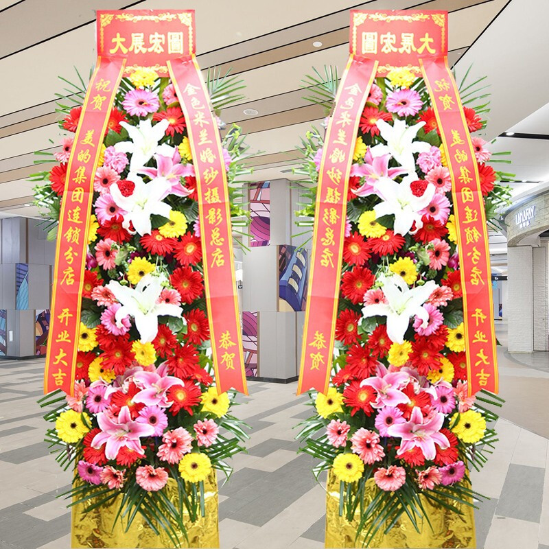 不错!!很满意!!卖家按着要求准时送到的,没有耽误花篮也好看,公司如果需要的话还会再来