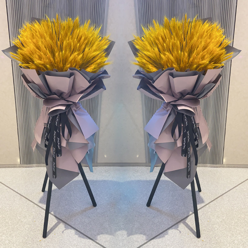 花 材:400支大麦,银粉色双面纸多层高领包扎,同色系花结。