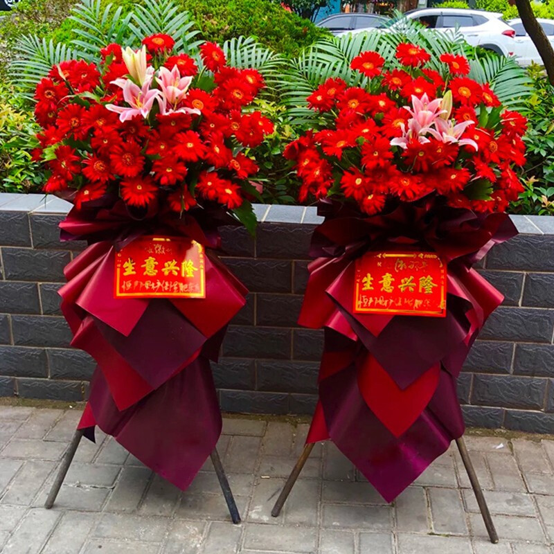 朋友开业,很满意!!!上午准时送到!朋友开业很满意!!!花篮也很丰满