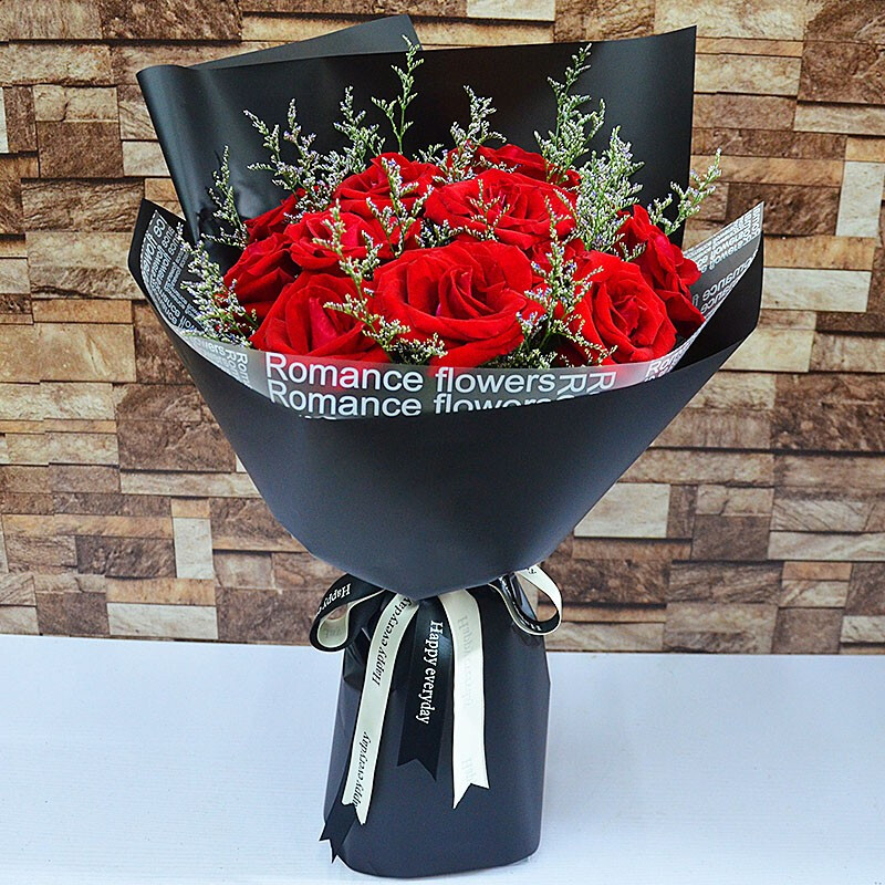 【朗月清风】精选11朵红玫瑰,情人草装饰。