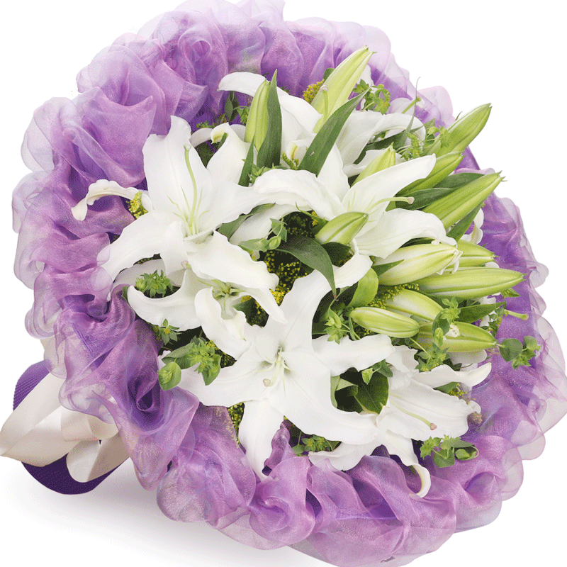 【心悦彼此】精选15朵白色香水百合,搭配勿忘我、满天星丰满间插。