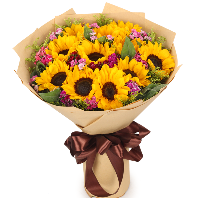 【信仰】9支精品向日葵,搭配绿叶丰满装饰。