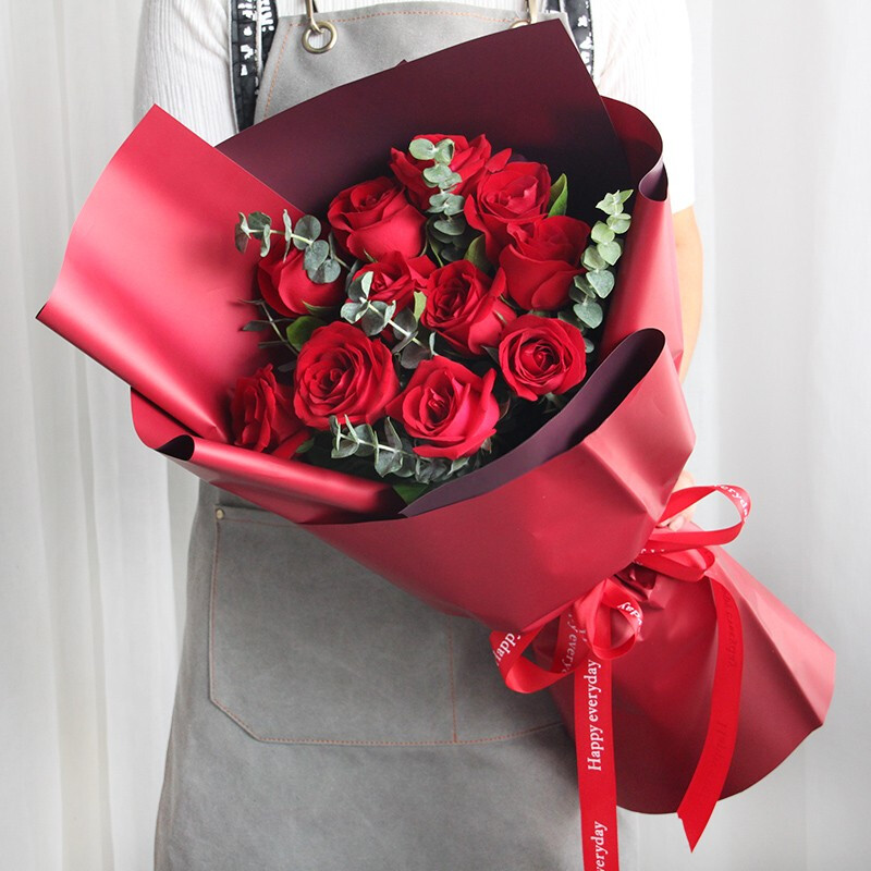 【一世陪伴】11朵红玫瑰,搭配尤加利叶。