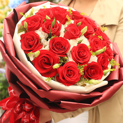 【花下浅醉】19朵红玫瑰,搭配满天星丰满间插。