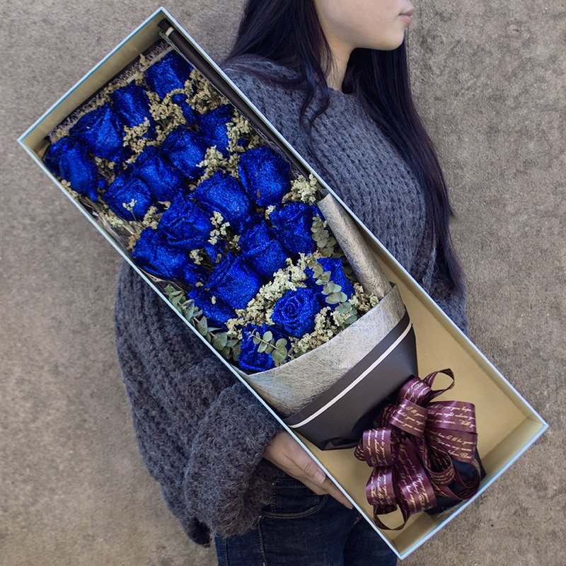 【天定良缘】23朵蓝色妖姬,搭配尤加利叶装饰。