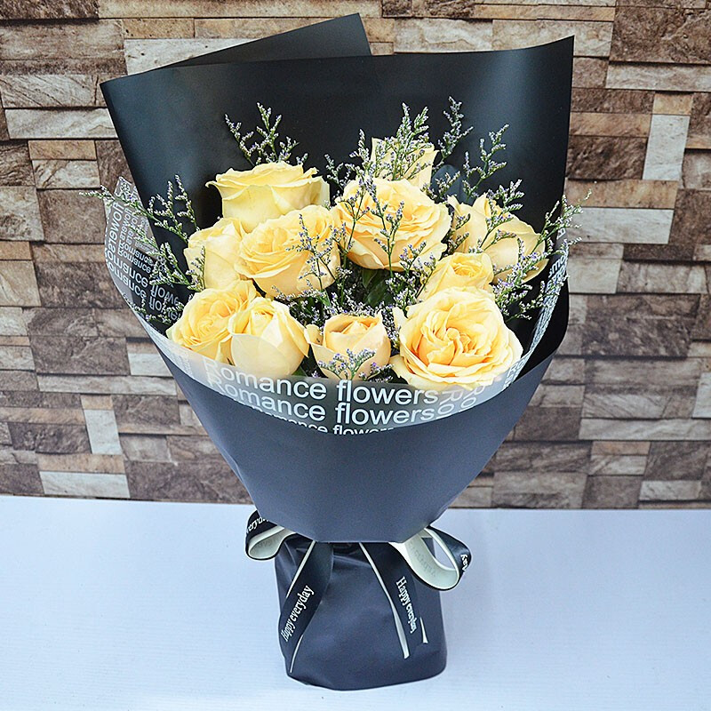 【那年夏天】11朵精品香槟玫瑰,情人草装饰。