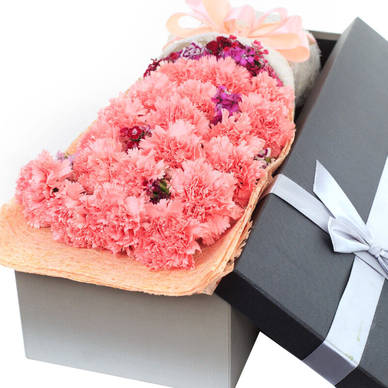 【真诚祝福】19支粉色康乃馨,搭配石竹梅。