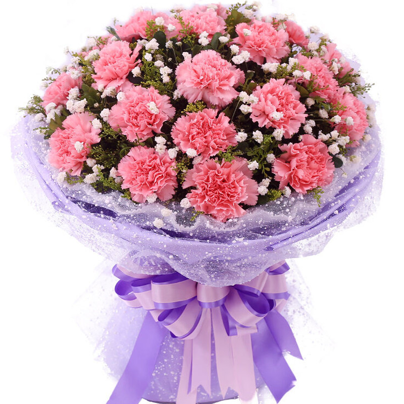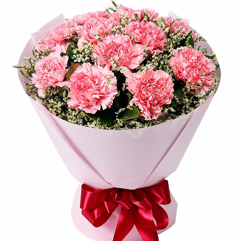 【美好的祝福】11支精品粉康乃馨,搭配适量水晶草、绿叶。