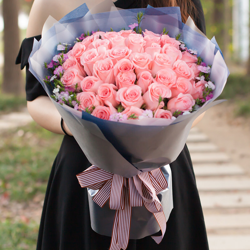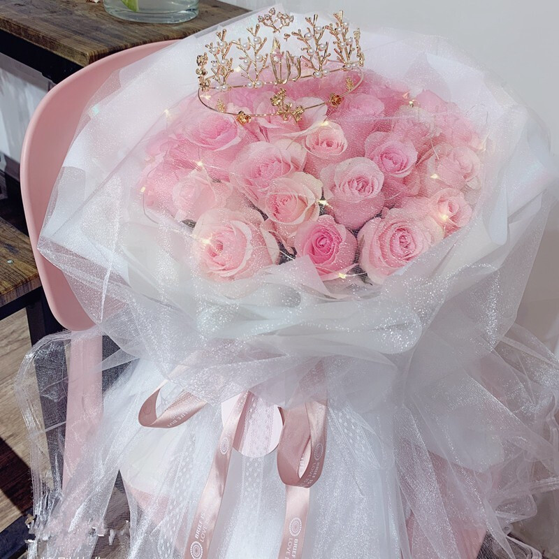 【浪漫小诗】33朵精品粉玫瑰,皇冠装饰花面。