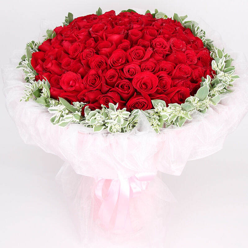 【幸福岁月】精选99朵顶级红玫瑰,叶上花丰满围绕。