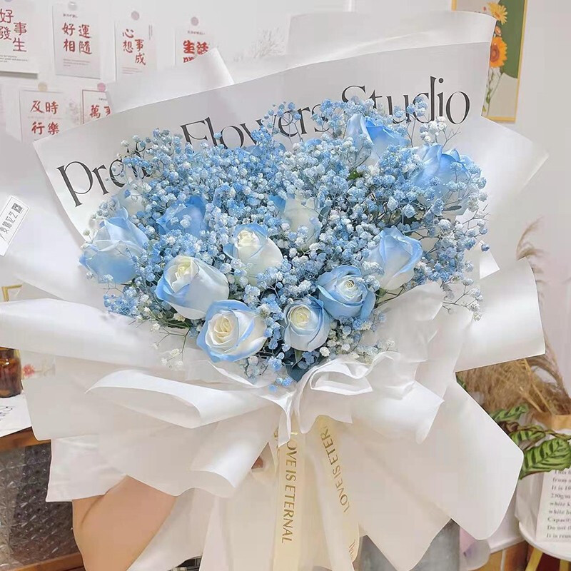 【蓝天白云】19枝碎冰蓝玫瑰,搭配蓝色满天星(珍贵稀少花材,请提前预订或咨询花艺师)