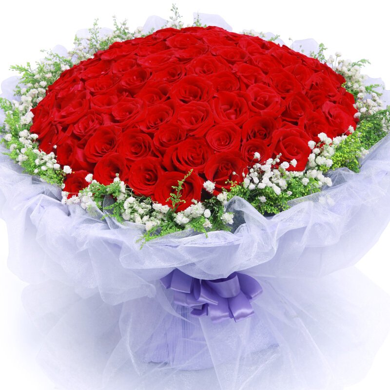 【爱你到永恒】99朵红玫瑰,搭配相思梅点缀。