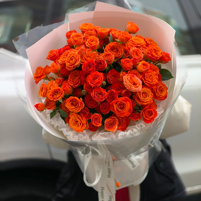花 材:精选19枝多头橙色芭比(珍贵稀少花材,请提前预定)