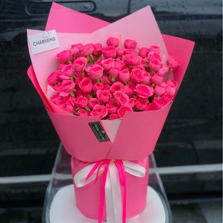 花 材:精选19支多头苏菲宝贝玫瑰。