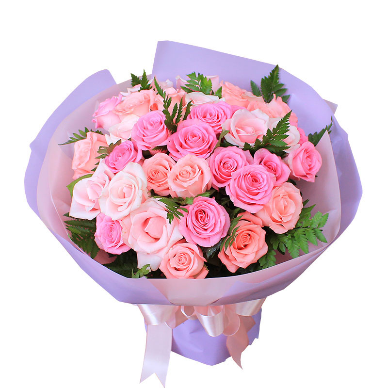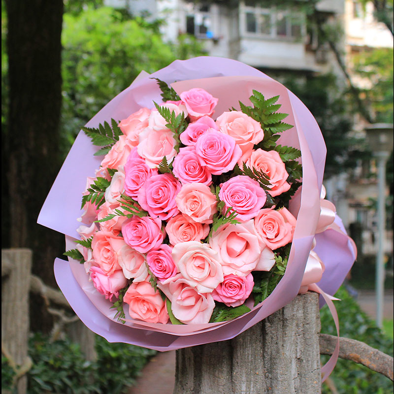 包 装:粉色雾面纸内衬,紫色雾面纸外包,精美蝴蝶结。