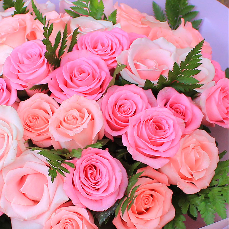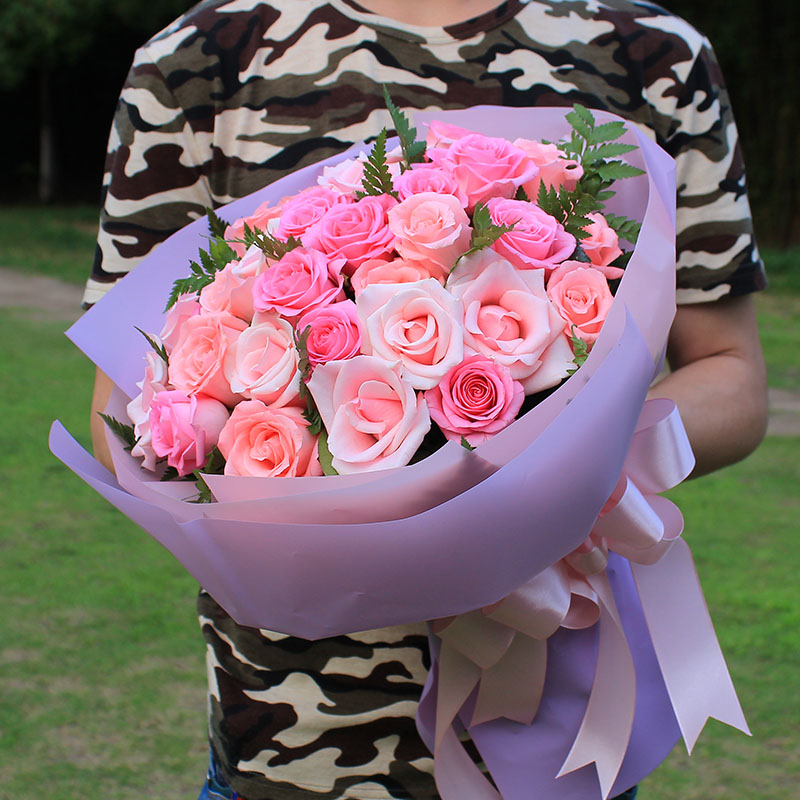 花材: 12朵苏醒、21朵粉玫瑰,鱼尾叶点缀。