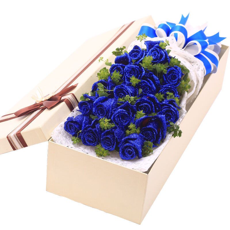 花材: 19支精品蓝色妖姬,搭配适量叶上黄金。