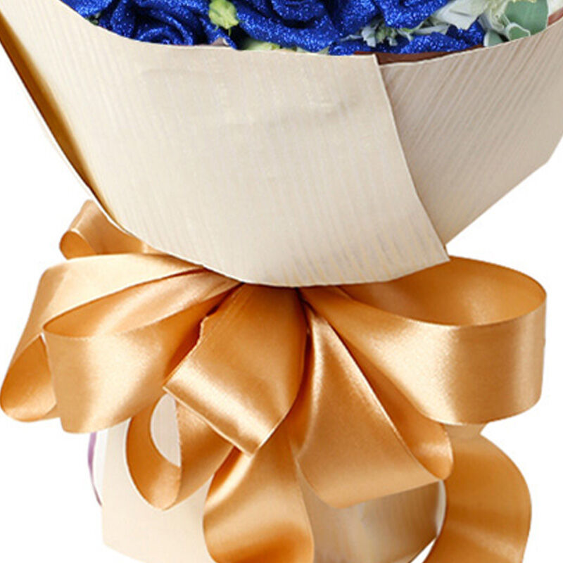 花 材:19支蓝玫瑰+1支多头白百合,搭配叶上花或桔梗、绿叶。