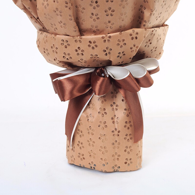 包 装:内白色、外咖啡色镂空纸圆形包装。