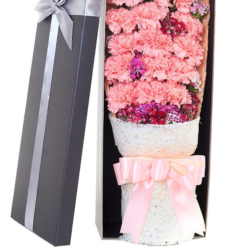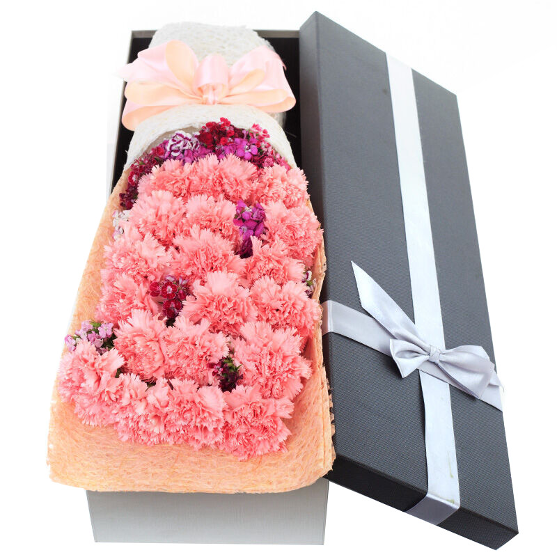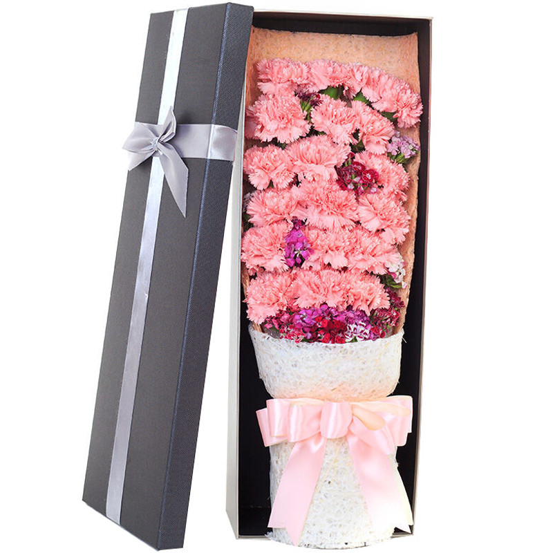 花材: 19支粉色康乃馨,搭配石竹梅。