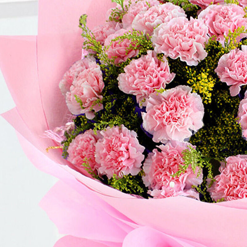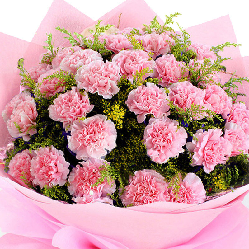 花材: 33支粉色康乃馨,搭配黄莺。