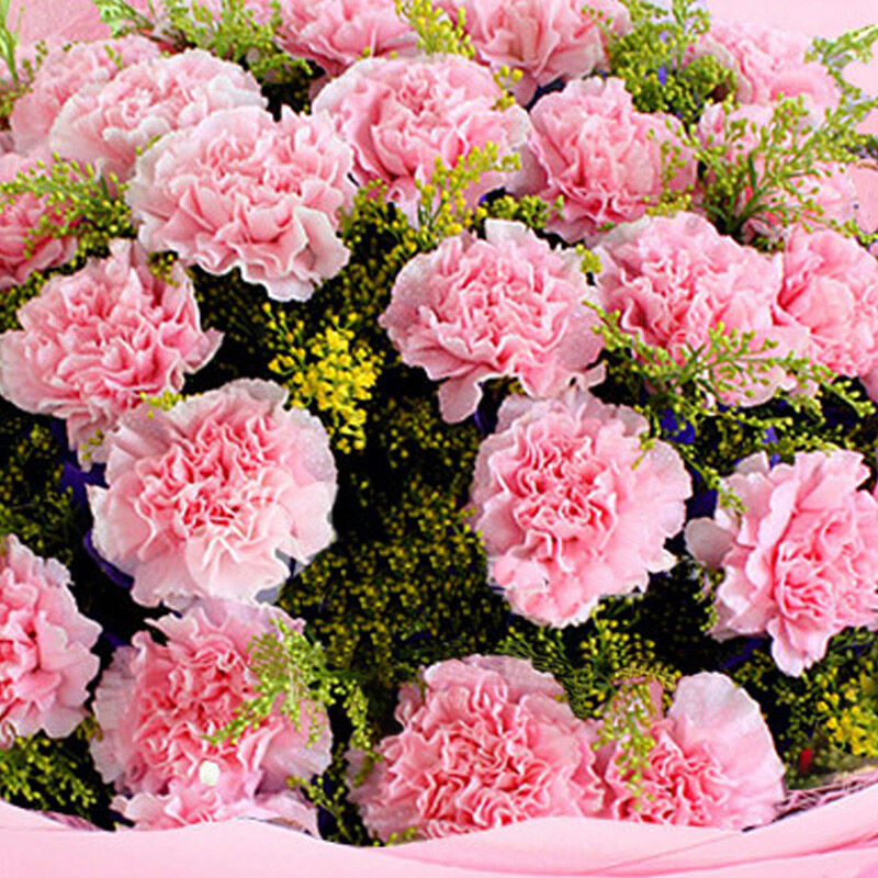 花 材:33支粉色康乃馨,搭配黄莺。