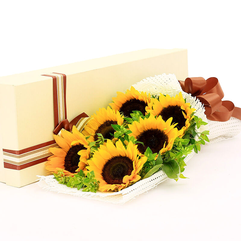 花材: 6支精品向日葵,搭配黄莺或绿叶。