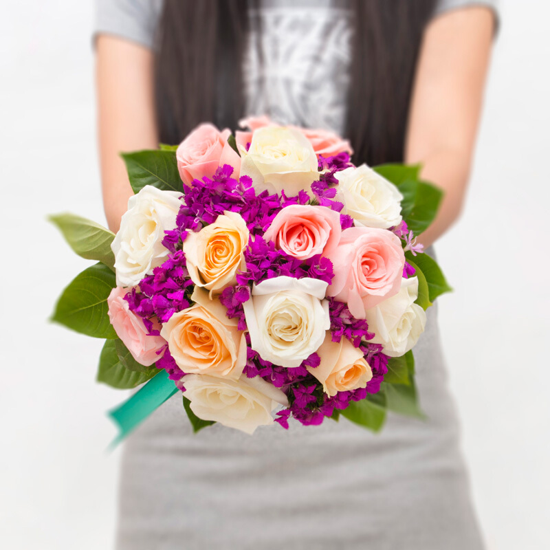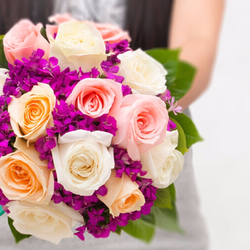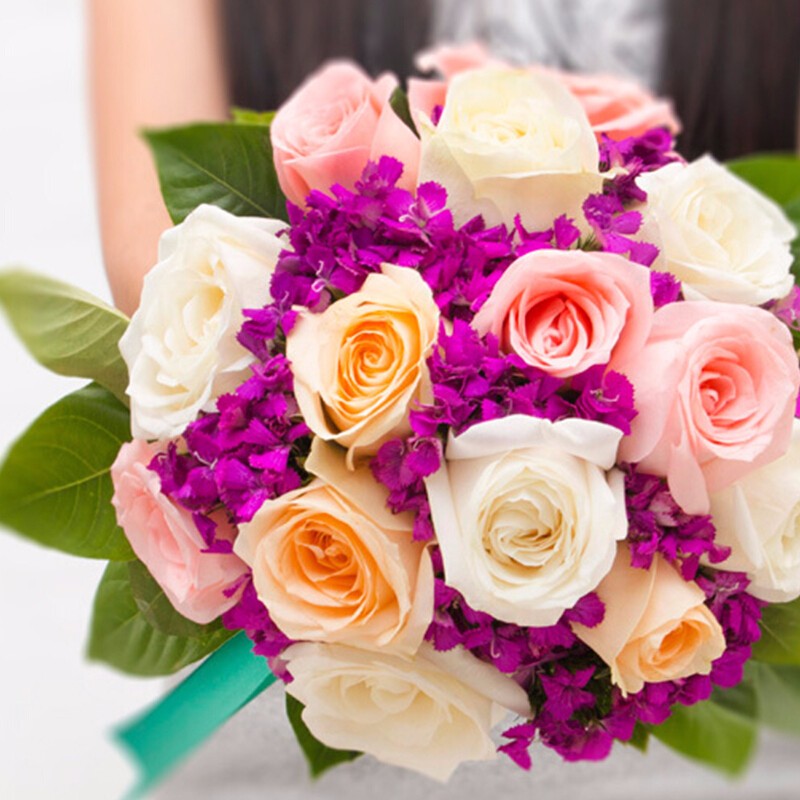 包 装:精选香槟玫瑰、粉玫瑰、白玫瑰共16支,搭配勿忘我、栀子叶点缀。(若勿忘我断货,则用紫色满天星代替)