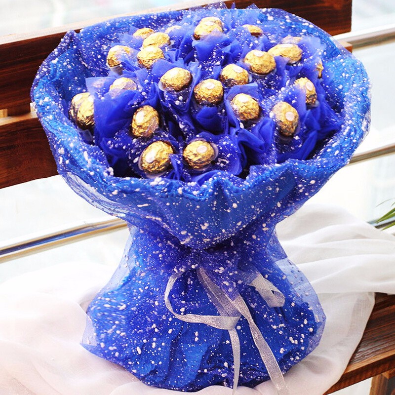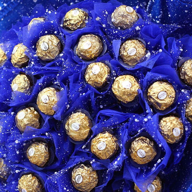 花材: 33颗顶级费列罗,包成圆形花束。