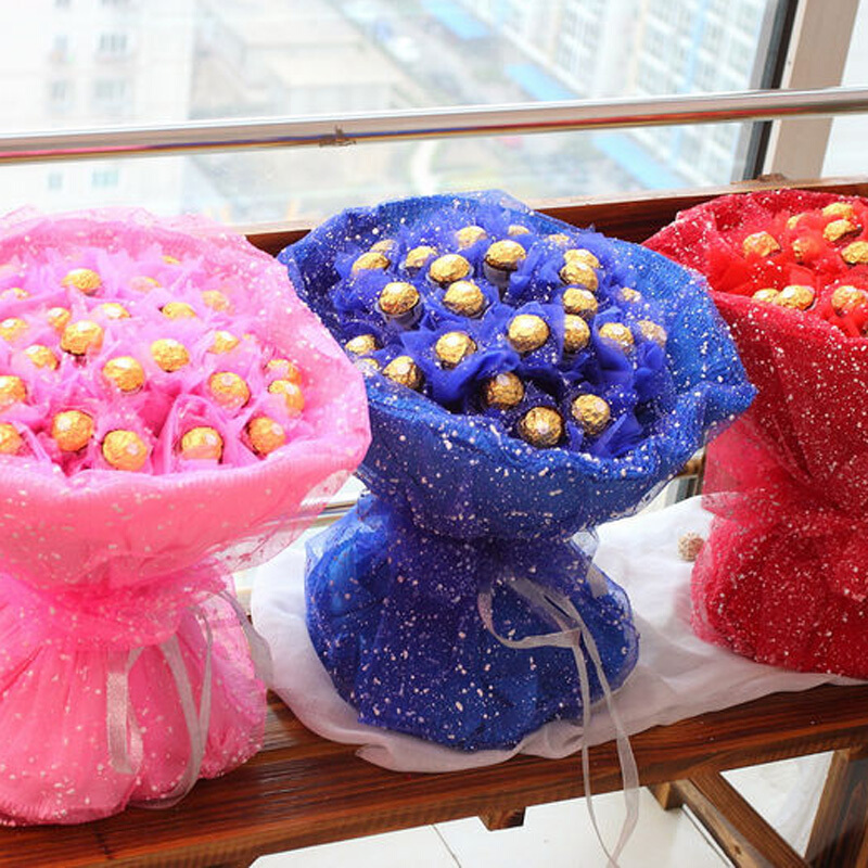 花 材:33颗顶级费列罗,包成圆形花束。