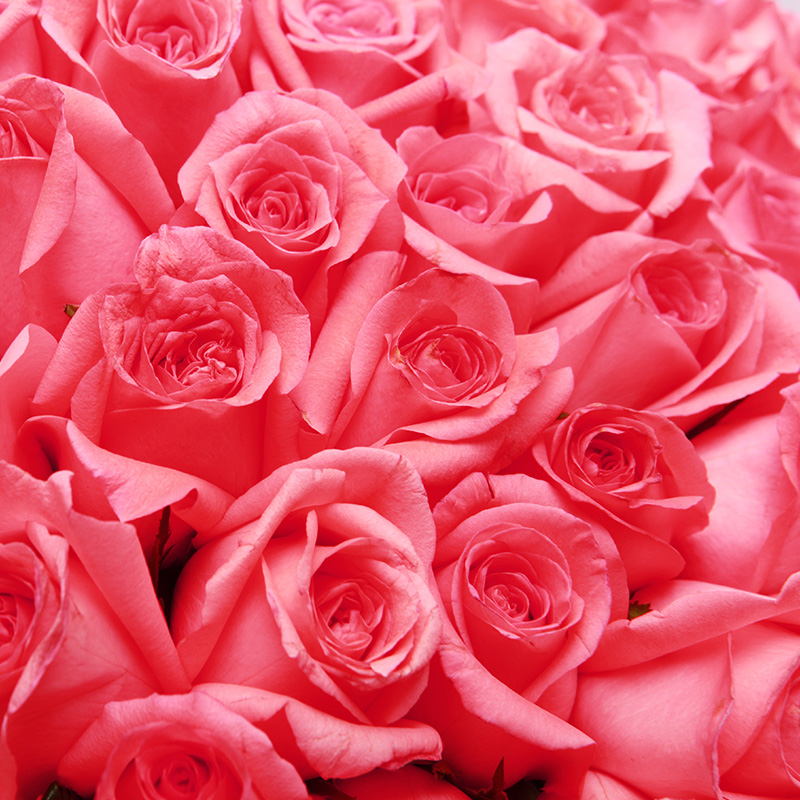 花材: 66支精品粉玫瑰,搭配黄莺草外围环绕。