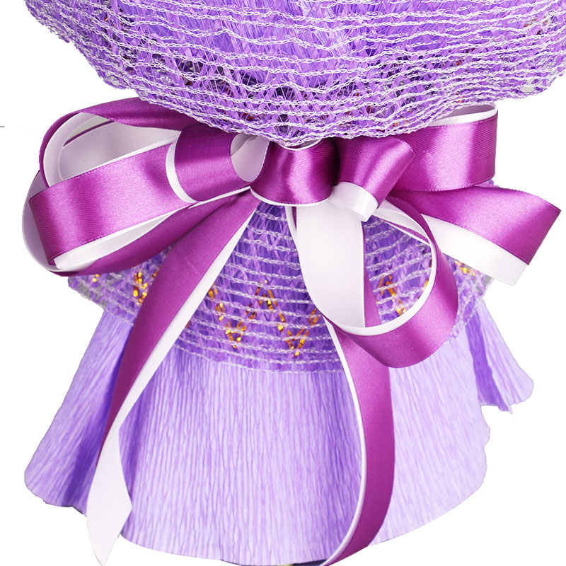 包装: 紫色卷边纸双层包装,白色网纱,精美花结。