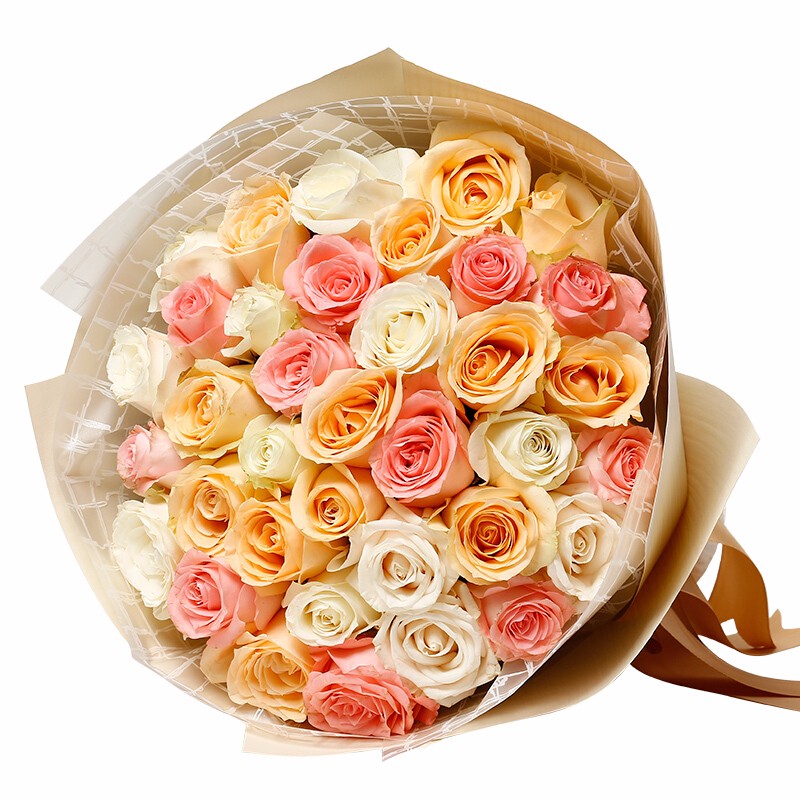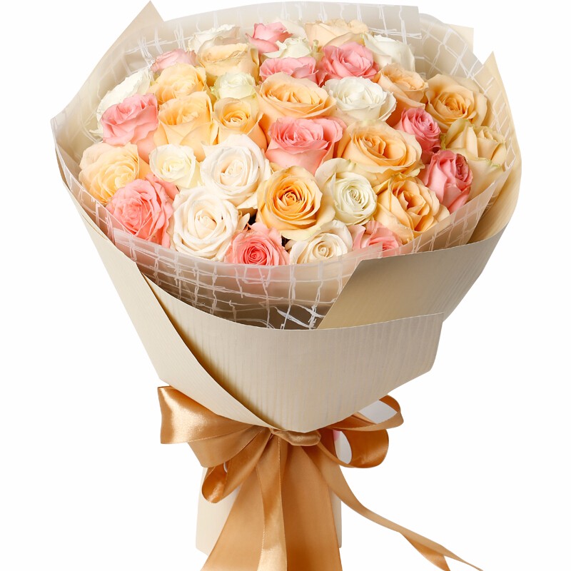 花材: 33枝混搭玫瑰(粉玫瑰+香槟玫瑰+白玫瑰)