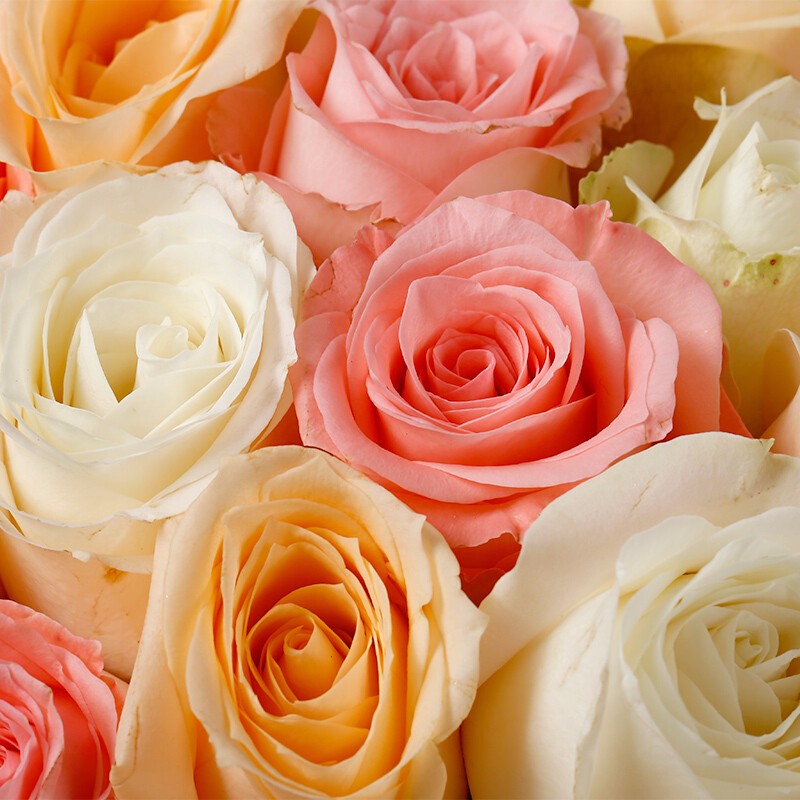 花 材:33枝混搭玫瑰(粉玫瑰+香槟玫瑰+白玫瑰)