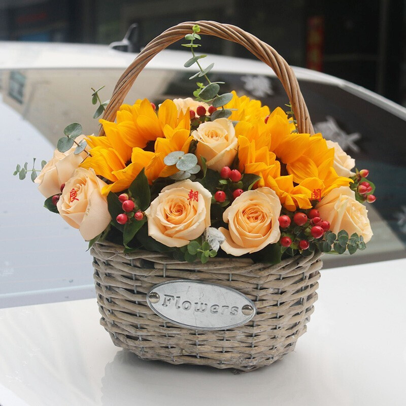 包装: 精美手提花篮(花篮和配饰等具体以当地实物为准)