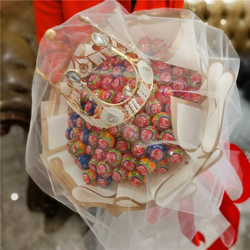 花材: 99颗棒棒糖,1个皇冠花面装饰。