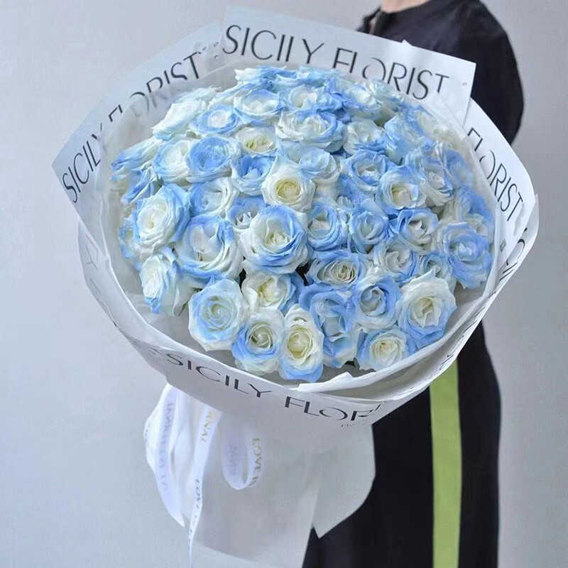 花材: 精选52朵碎冰蓝玫瑰(珍贵稀少花材,请提前预订或咨询花艺师)