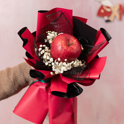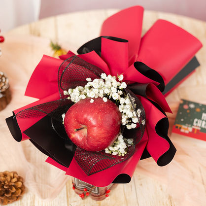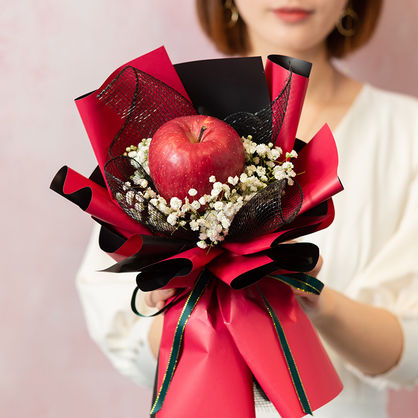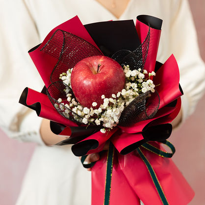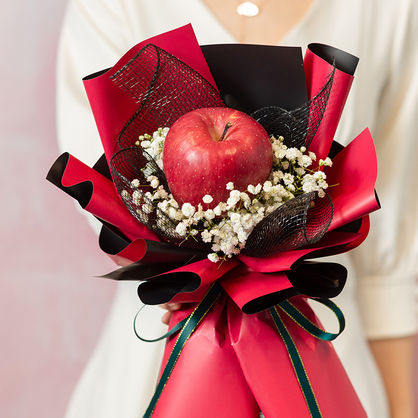 花 材:精选1个苹果,搭配白色满天星装饰。