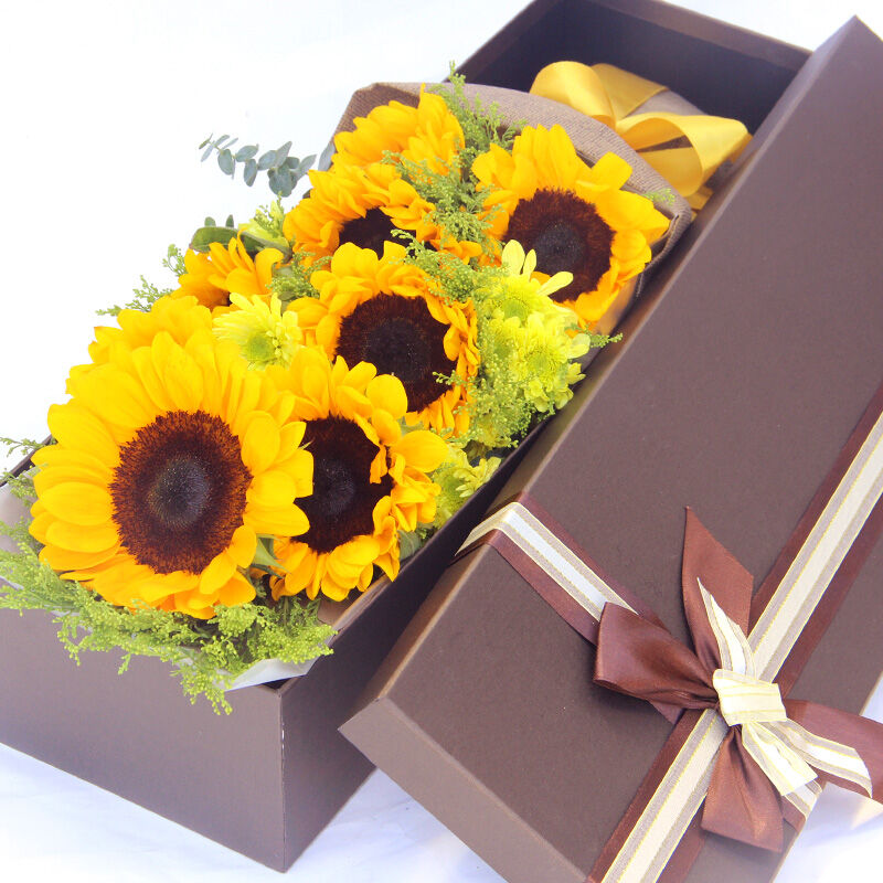 花 材:精选8支向日葵,搭配黄英点缀。