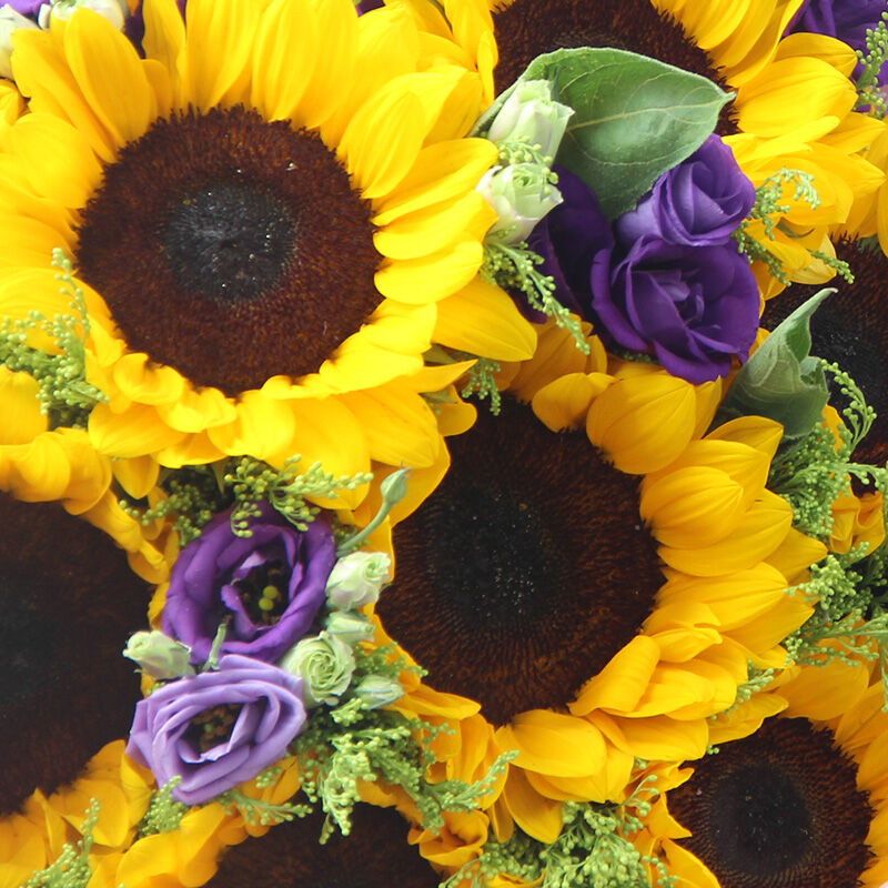 花 材:9枝向日葵,搭配黄莺、洋桔梗。
