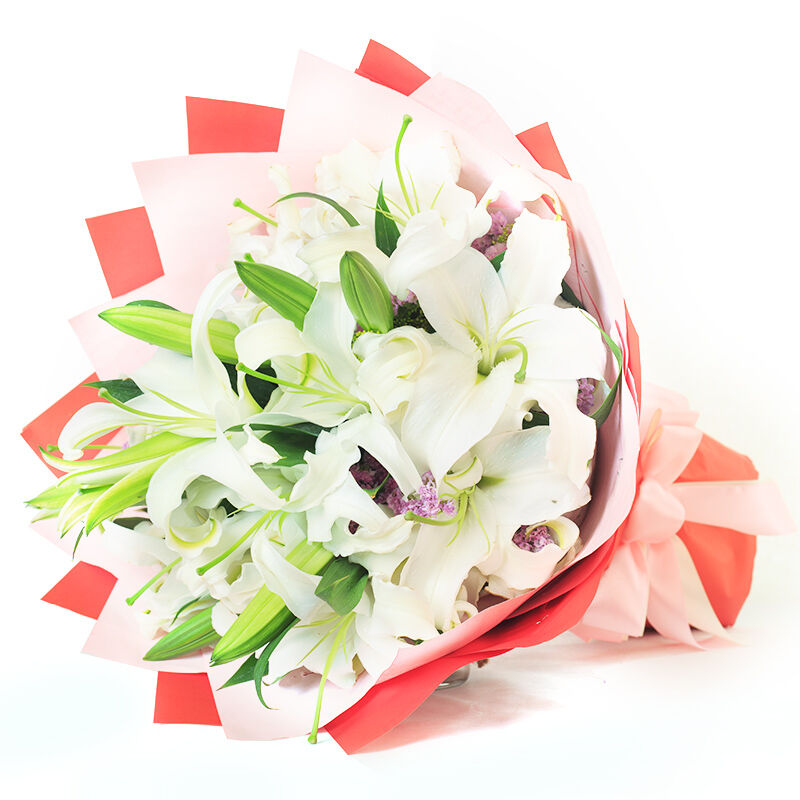 爱的祝福 - 24朵白百合,紫色小花、黄莺草点缀。