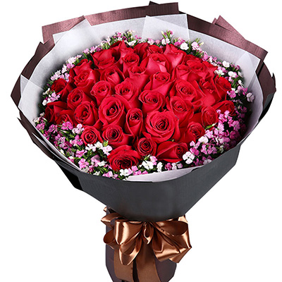 【如花似玉】33朵红玫瑰,搭配石竹梅外围点缀。