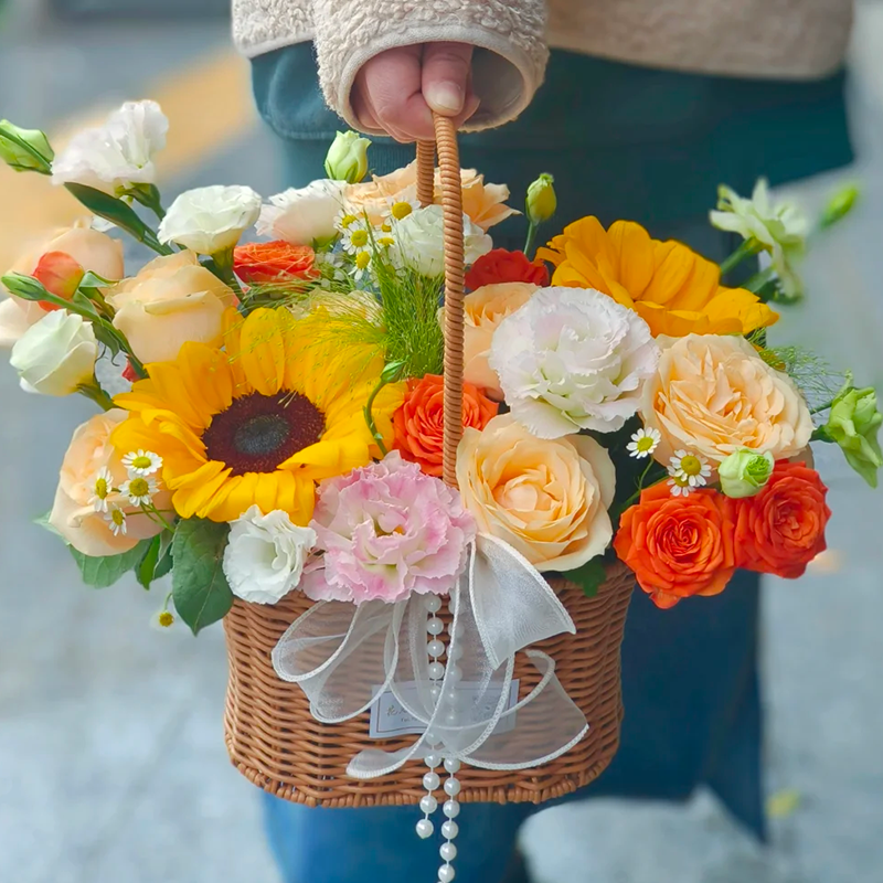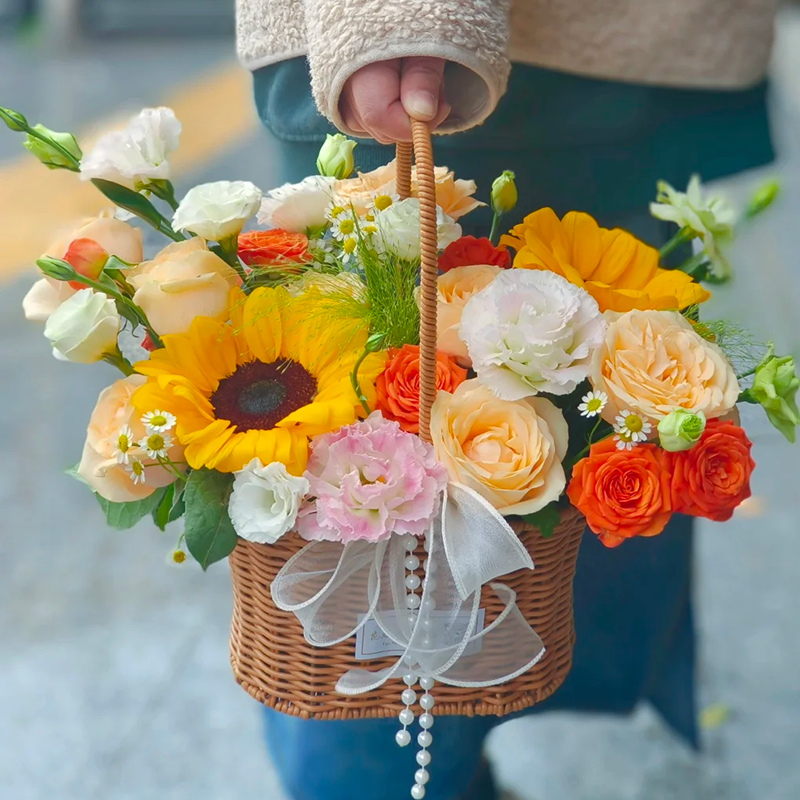 包装: 精美手提花篮,提手用珠串和蕾丝缎带装饰。(篮子和配饰等具体以当地实物为准)